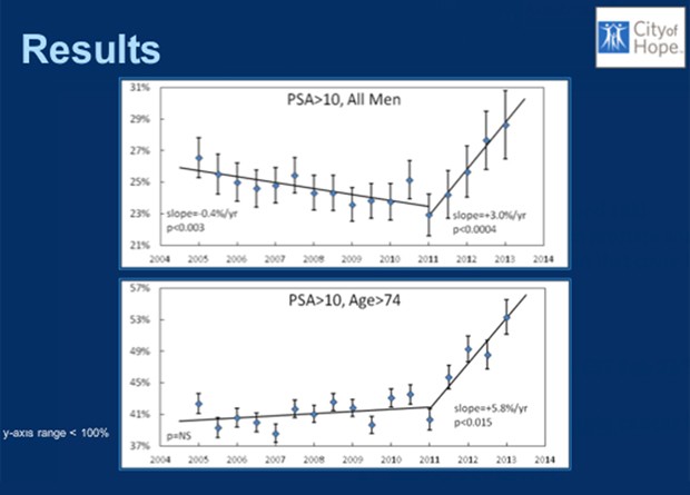 2. Hall MD, Schultheiss TE, Farino G, Wong JYC. Increase in higher risk prostate cancer cases following new screening recommendation by the US Preventive Services Task Force (USPSTF). Presented at the 2015 Genitourinary Cancers Symposium. Abstract 143.
