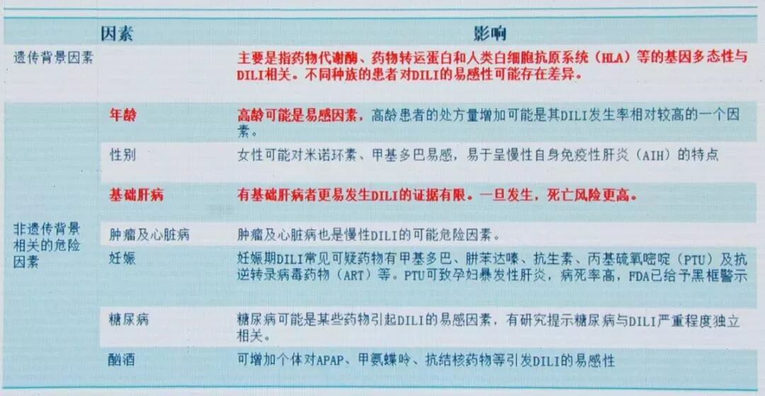 DILI发生的危险因素(见图2):由于目前并无证据证明某一个因素是所有DILI的主要风险,因此,指南未提出专门的推荐意见。