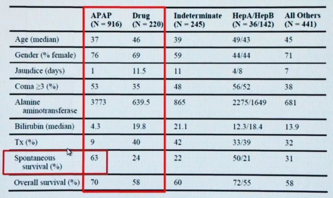 对乙酰氨基酚引起的急性肝衰竭(APAP-ALF)与Idiosyncratic药物相关肝损伤的临床表现有所不同。